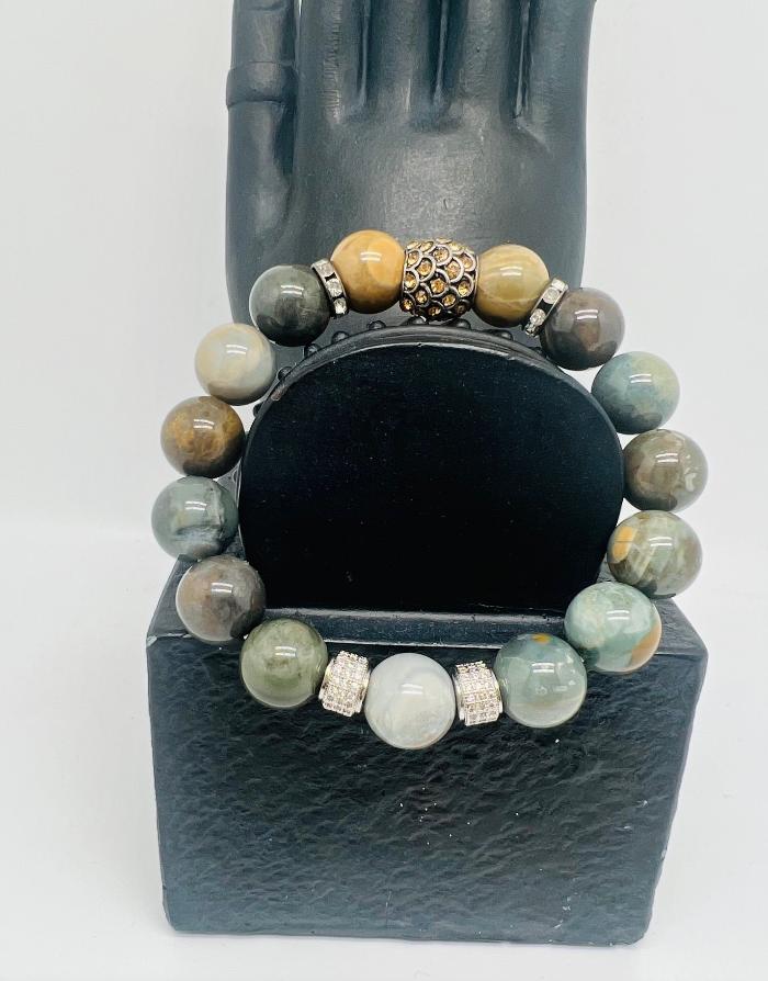 - Bead materials: natural stone beads 13mm, elastic band, rhinestones